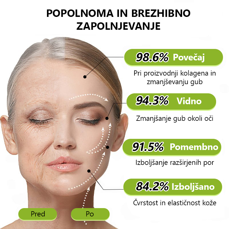 Vidni rezultati ลพe v 72 urahย ย โ znanstveno dokazano, kliniฤno preizkuลกeno in vลกeฤ resniฤnim uporabnikom. Brez igel. Brez ostrih reakcij. Samo hitro, opazno zategovanje koลพe, ki ga lahko vidite in obฤutite.