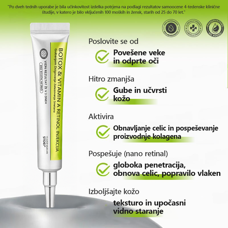 โ ย ย Peptidi, podobni botoksu + moฤ retinola โ dermatoloลกko odobreno in kliniฤno preverjeno
