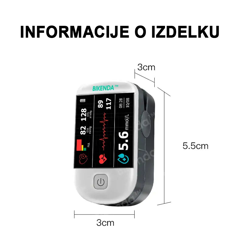 Koncentracija glukoze in kisika v krvi sta ključna fiziološka parametra človeškega krvnega obtoka. Z merilnikom glukoze in kisika v krvi Bikenda™ lahko spremljate svoje trenutno telesno stanje v realnem času. Nenormalne ravni glukoze in kisika v krvi imajo lahko številne negativne učinke na telo, v hujših primerih pa so lahko celo smrtno nevarne.