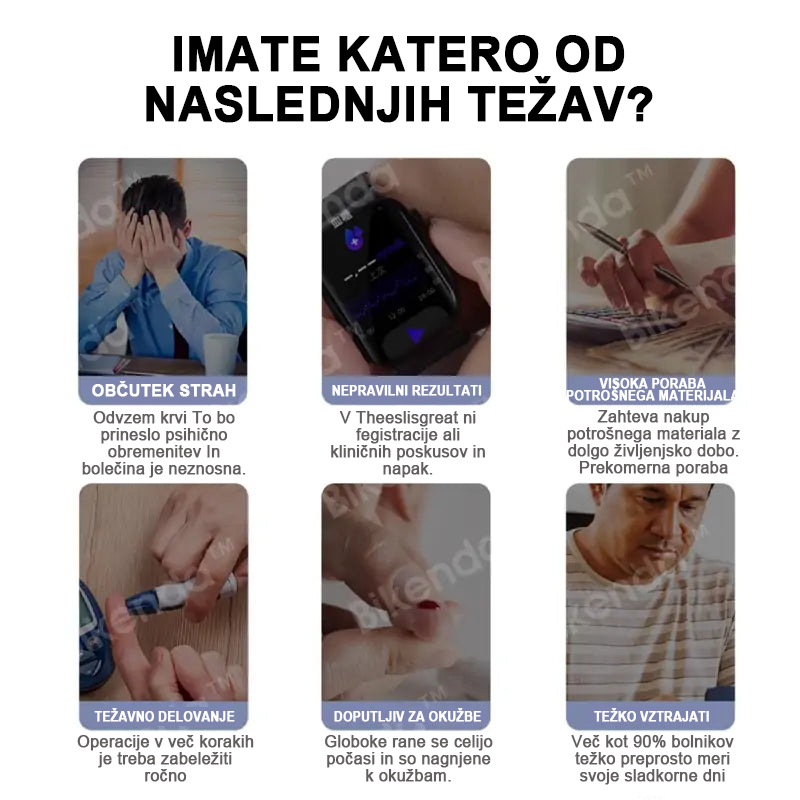Uravnavanje ravni sladkorja v krvi ne bi smelo pokvariti banke. S pametnim merilnikom glukoze v krvi Bikenda™ lahko spremljate svoje zdravje z 99,9-odstotno natančnostjo – vse za samo 30 €. Zakaj bi porabili 2999 € za obiske v bolnišnici za redne meritve krvnega sladkorja, če pa lahko to preprosto storite doma, kadar koli, z Bikendo™? Naš neinvazivni, neboleč merilnik zagotavlja zanesljive rezultate v realnem času brez težav ali visokih stroškov obiskov pri zdravniku. Prihranite denar. Prihranite čas. Ostanite zdravi.
