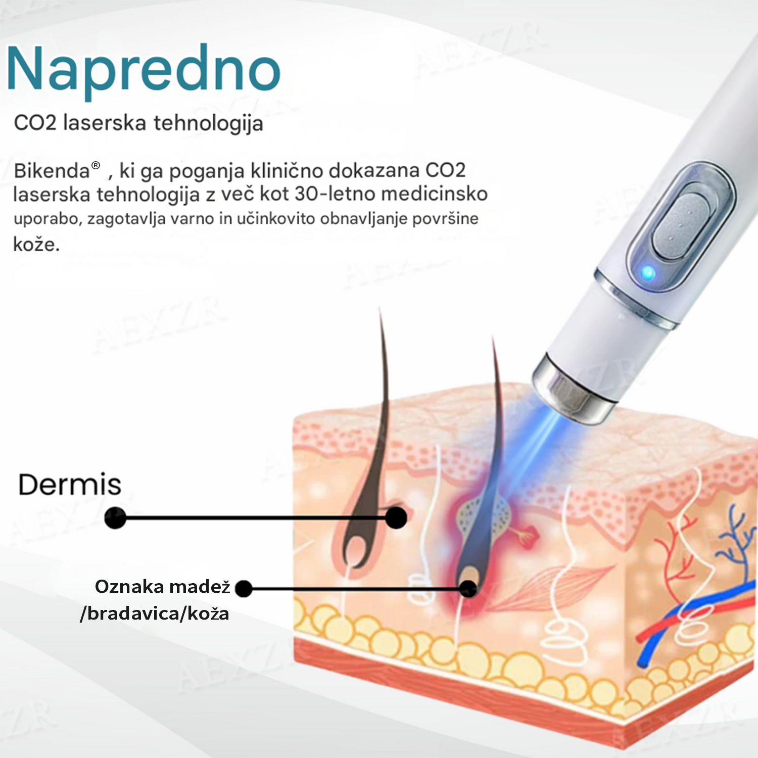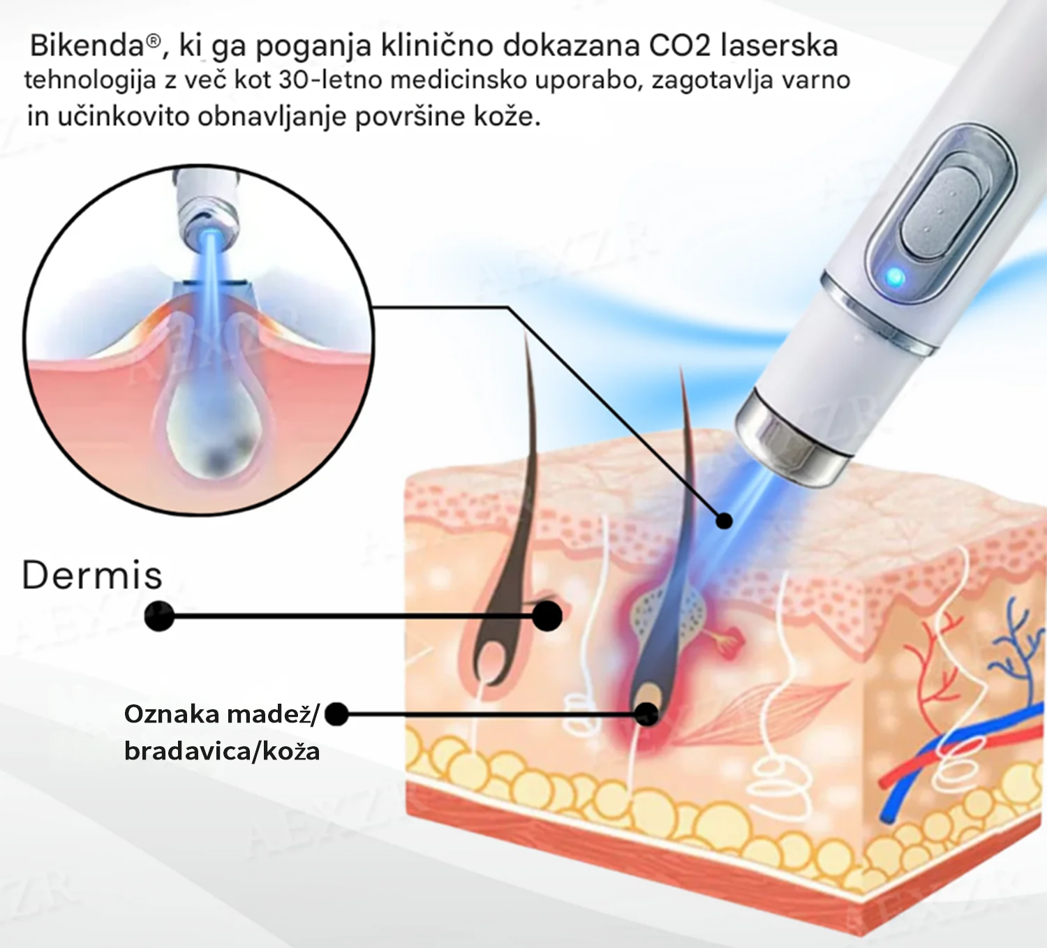 ✅ Bikenda® uporablja napredno CO₂ lasersko tehnologijo za natančno razgradnjo neželenega kožnega tkiva plast za plastjo, spodbuja naravno celjenje in hkrati preprečuje brazgotinjenje ali draženje.