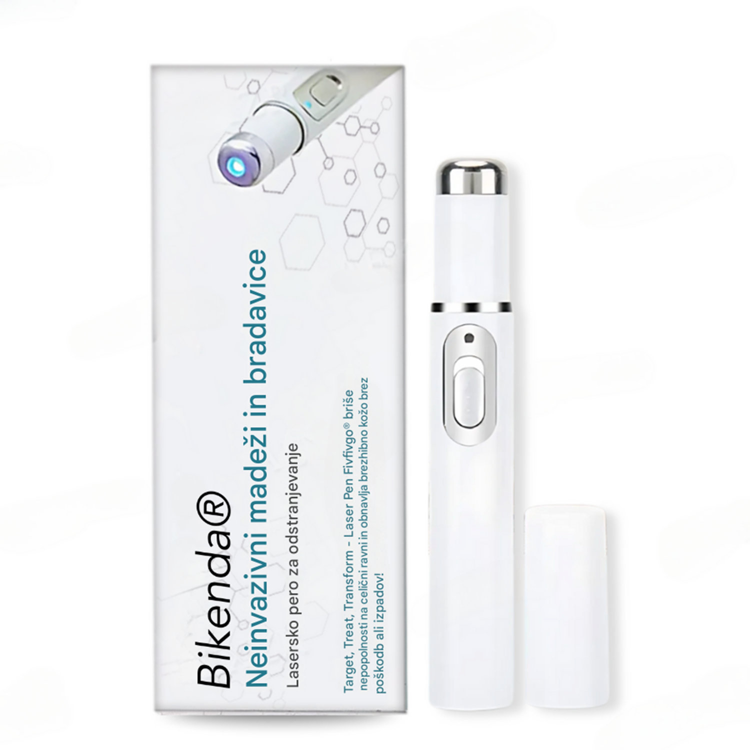 - 1 naprava x neinvazivno lasersko pero za odstranjevanje madežev in bradavic Bikenda®