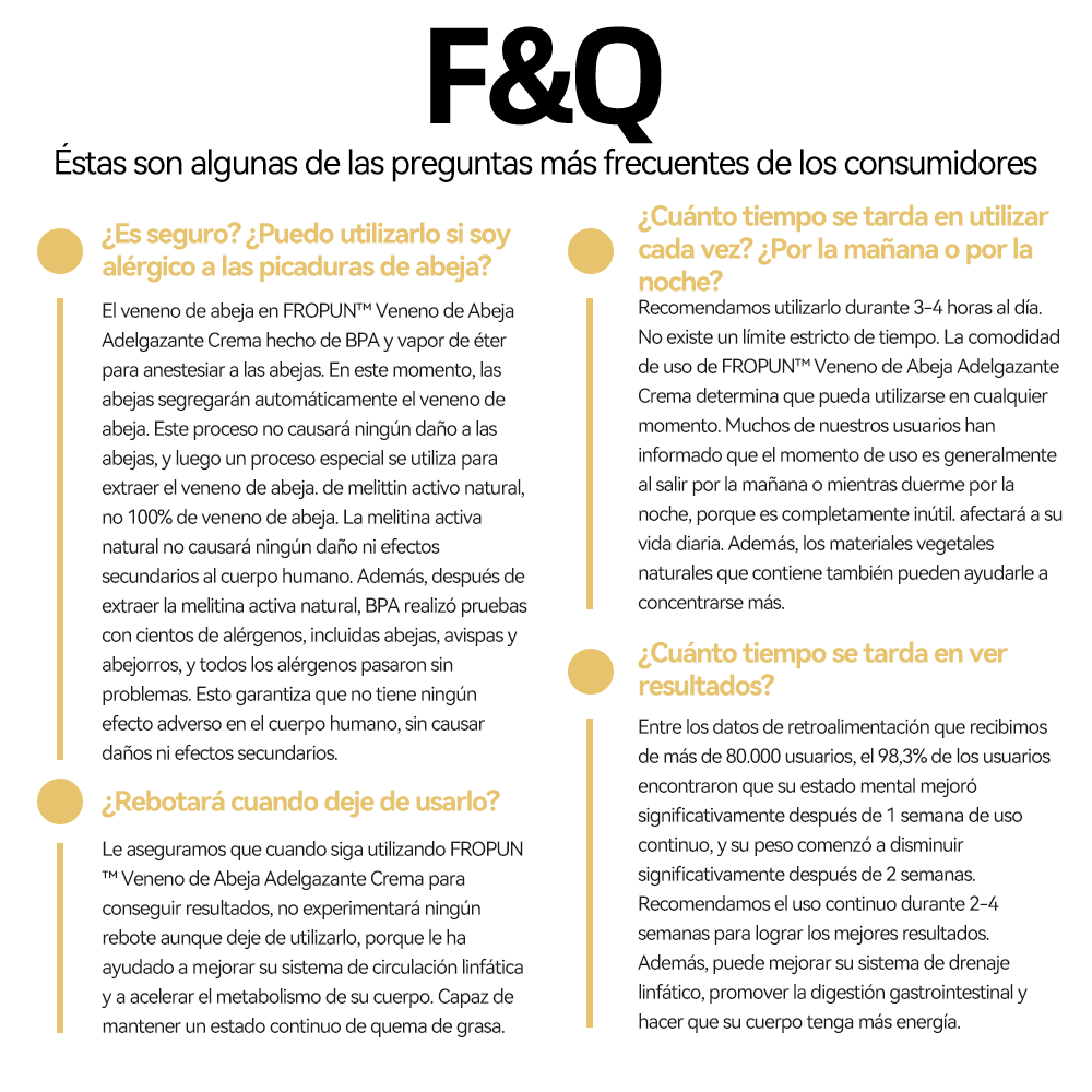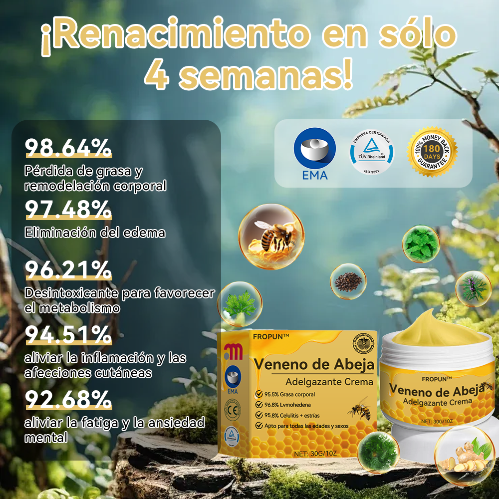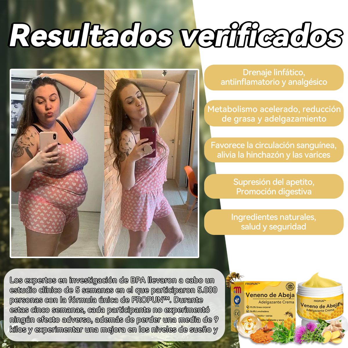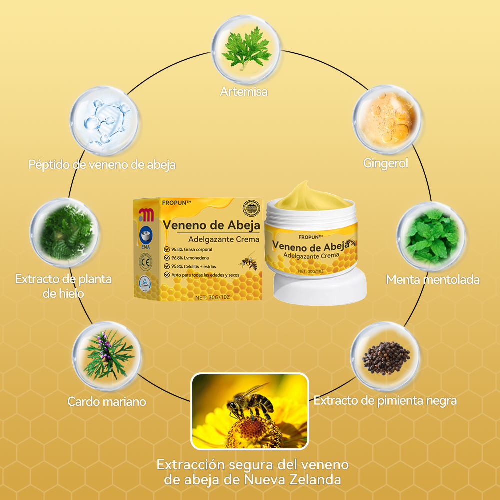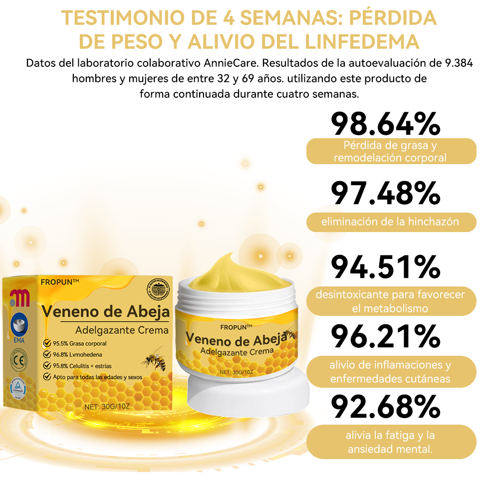 Te kreme s čebeljim strupom so res neverjetne! Neprekinjeno jih uporabljam približno 3 tedne in moje telo počasi doživlja pozitivne spremembe, skoraj kot da bi maščoba, ki je bila shranjena na mojem trebuhu, postopoma izginjala, zaradi česar se je moj trebuh zmanjšal. Občutek napihnjenosti pri meni in prebavi sta močnejša, čeprav moja prehrana ostaja enaka kot prej, zdaj se počutim lažje in bolj energično.