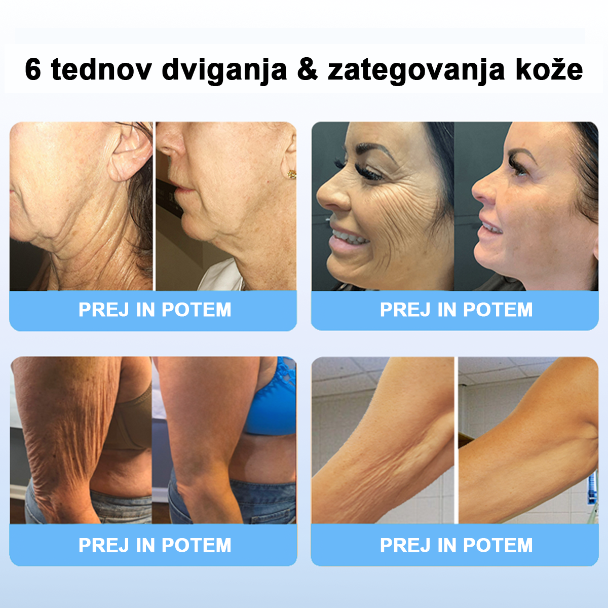 - ☑️Osredotoča se na dviganje in učvrstitev kože: učinkovito za vrat, zadnjico, trebuh, stegna, roke in prsi.