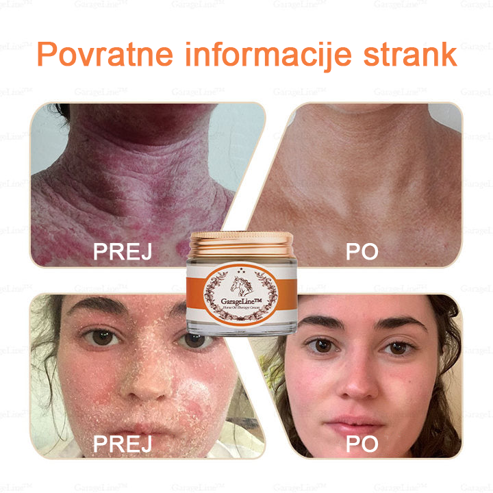 Potem je naša GarageLine™ terapevtska krema s konjskim oljem kot nalašč za vas! Tesno smo sodelovali z vodilnimi strokovnjaki za naravno nego kože, da bi razvili revolucionarno kremo, ki izkorišča naravno zdravilno moč konjskega olja za izboljšanje težav s kožo. Terapevtska krema s konjskim oljem GarageLine™ vlaži, obnavlja in izboljša čvrstost in gladkost kože, kar vam omogoča, da se poslovite od staranja, suhe, hrapave kože in obnovite zdravo, samozavestno kožo, v kateri lahko uživate vsak dan.