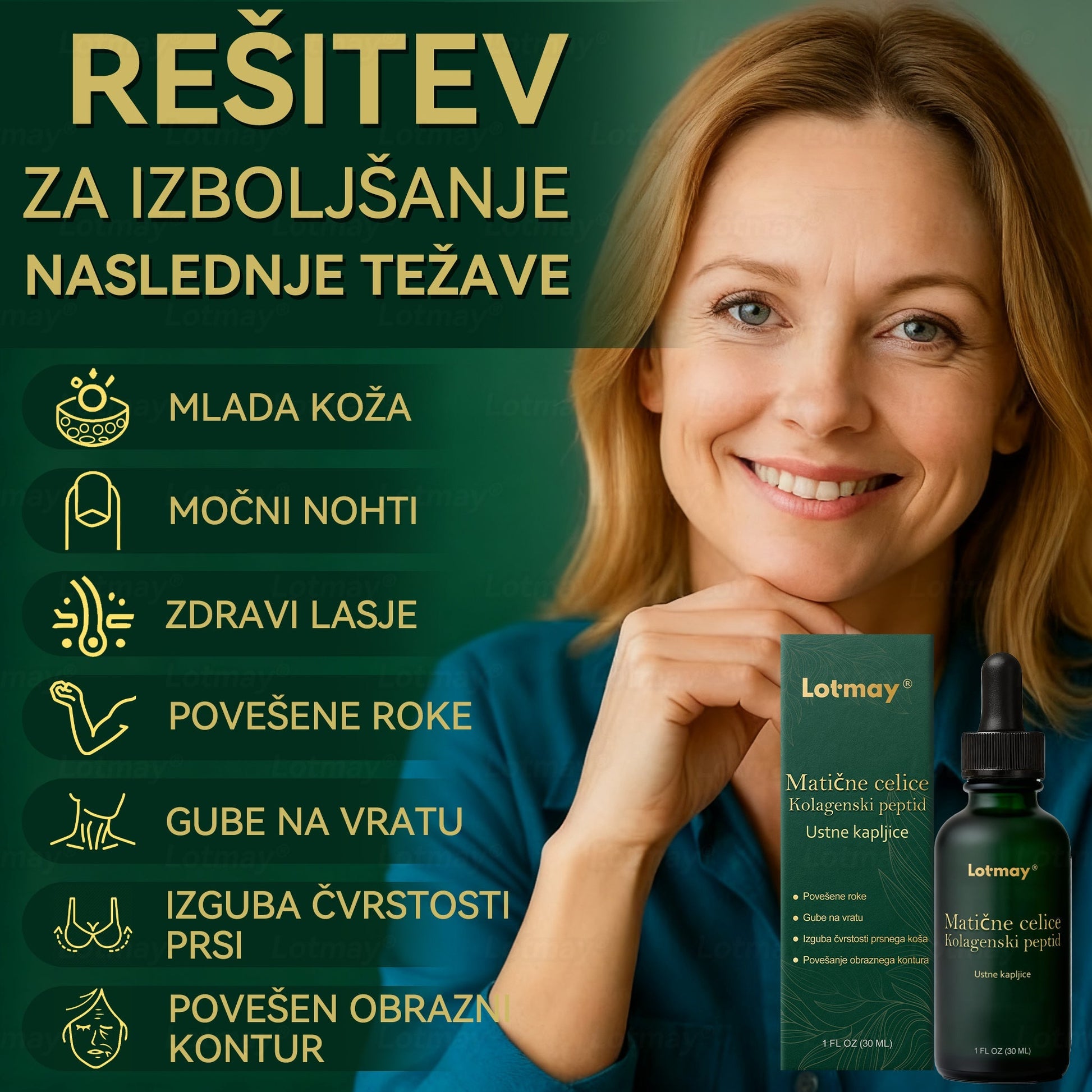 Zelo sem vesela, da sem preizkusila Lotmayยฎ Ustne kapljice z matiฤnimi celicami in kolagenskimi peptidi โ to je nekaj povsem drugaฤnega, kot sem uporabljala v preteklosti. Pred tem sem kupovala kolagenske in vitaminske tablete v lokalni trgovini. Iskreno, bile so prava muka โ prevelike, z ostrimi robovi, zaradi katerih je bilo poลพiranje prava naloga. Poskusila sem jih celo nekajkrat razlomiti na pol, ampak bile so tako trde, da so se koลกฤki ลกe bolj ostrili. Se lahko poistovetite?