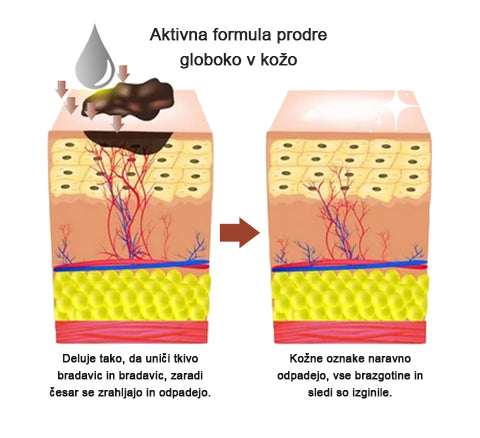 Njegove aktivne sestavine uničijo tkivo bradavic in ga prisilijo, da se zrahlja in odpade. Nanesite ta odstranjevalec bradavic na obraz ali telo, da se kožne oznake posušijo in skrčijo, dokler naravno ne odpadejo s površine kože.