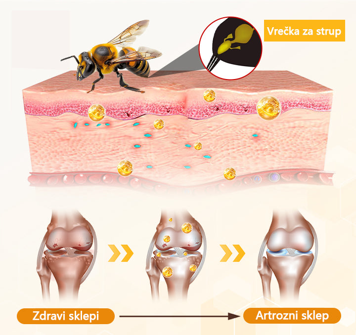 Čebelji strup je močna, naravno prisotna snov z biološko aktivnimi spojinami, ki podpirajo obnovo sklepov.
