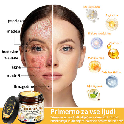 Naša razkošna krema združuje salicilno kislino, manuka med in hialuronsko kislino, ki zlahka prodre tik pod površino kože, da zadrži vlago in spodbudi proizvodnjo kolagena, medtem ko revitalizira kožne celice. Izkusite čarobnost, saj pomaga zbledeti brazgotine in nepopolnosti, popravljati poškodbe kože zaradi nosečnosti, operacij, poškodb, aken, carskih rezov in znakov staranja. Znanstveno oblikovana za mehčanje in pomiritev suhe, srbeče kože in občutljivih tipov kože – vključno z ekcemom, luskavico, dermatitisom in rozaceo – ta krema vam prinaša olajšanje in udobje. Preobrazite svojo kožo in si povrnite samozavest z vsako uporabo!