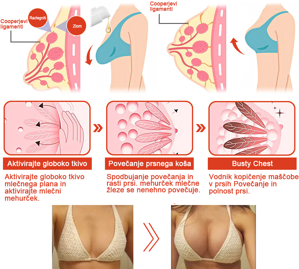 "𝗦𝗧𝗗𝗘𝗜™ 𝐌𝐀𝐆𝐈𝐂 𝐋𝐔𝐊𝐒𝐔𝐙𝐍𝐎 𝐎𝐋𝐉𝐄 𝐙𝐀 𝐓𝐄𝐋𝐎 je močno izboljšalo moje zaupanje glede povešenih prsi. Čudovit občutek je imeti bolj gladko in mlajšo kožo! Olje uporabljam že nekaj tednov in že opazim spremembe na koži okoli prsi. Olje je zelo enostavno za nanašanje in se hitro vpije, tako da ga lahko uporabim zjutraj, preden se oblečem, brez ostankov ali mastnosti. Všeč mi je, da vsebuje naravne sestavine, kot sta šipkovo olje in niacinamid za učvrstitev in pomlajevanje kože. Je varen in ne povzroča draženja, zato me nikoli ne skrbijo stranski učinki." – Barbara Jurič⭐⭐⭐⭐⭐