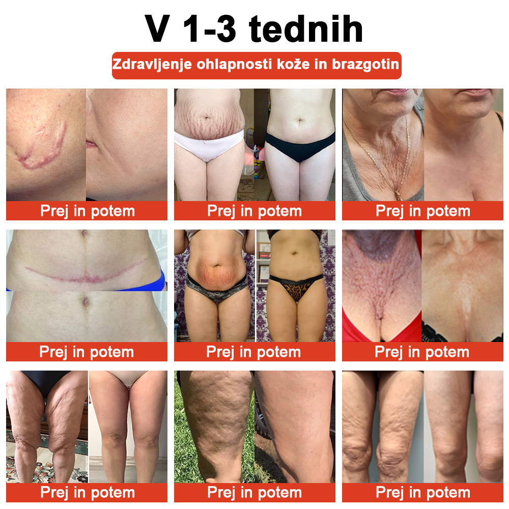 Ko se staramo, se kolagen v koži zmanjšuje, zaradi česar koža izgublja čvrstost in elastičnost. Spremembe teže lahko negativno vplivajo tudi na čvrstost kože; hitro pridobivanje ali izguba teže razteza kožo, uničuje elastinska vlakna in jo naredi starejšo. Po kliničnem testiranju Ameriške akademije za dermatologijo 𝗦𝗧𝗗𝗘𝗜™ 𝐌𝐀𝐆𝐈𝐂 𝐋𝐔𝐊𝐒𝐔𝐙𝐍𝐎 𝐎𝐋𝐉𝐄 𝐙𝐀 𝐓𝐄𝐋𝐎 lahko trajno odpravi te simptome v 3-5 dneh. Ima več kot 180.000 zadovoljnih uporabnikov in se še povečuje, pri čemer 98,5 % uporabnikov poroča o zasičenosti.