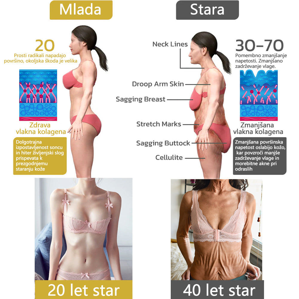 Letos sem stara 37 let in po rojstvu drugega otroka se je moj trebušček spremenil v tipičen 'mamin trebuh', povešen in zguban. Počutila sem se grozno in sploh nisem hotela telovaditi, ker se je z vsakim korakom tresel. Poskušal sem kakavovo maslo in masaže 2 meseca, vendar se ni nič spremenilo. Zdravnik mi je predlagal operacijo, a nisem želela brazgotin ali visokih stroškov. Moj mož je naročil ta izdelek zame in občutek je neverjeten. Hitro se vpije in ne pušča ostankov niti v gubah. Uporabljam ga vsak dan, nanesem ga 3-4 krat in do petega dne sem čutila, kako se mi koža napenja – hladen, čvrst občutek. Po dveh tednih sem na lastne oči videl dnevne spremembe. Koža je postopoma postajala čvrstejša, elastičnost pa se je počasi vračala. Zdaj, po skoraj dveh mesecih, je moj trebuh spet popolnoma normalen – brez gub, brez povešenosti, samo čvrst kot koža 20-letnice. Opazila sem tudi, da je koža okrog mojega trebuha postala svetlejša. Naslednjič jih nameravam kupiti za svojo 60-letno mamo, ker verjamem, da bo delalo čudeže tudi na njenih starajočih se rokah —— Ashley Moore