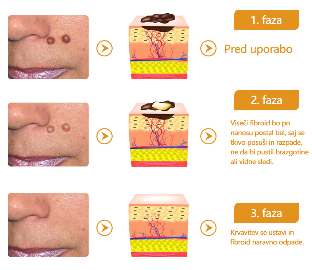 Učinkovito in dokazano odstranjuje bradavice in znamenja.