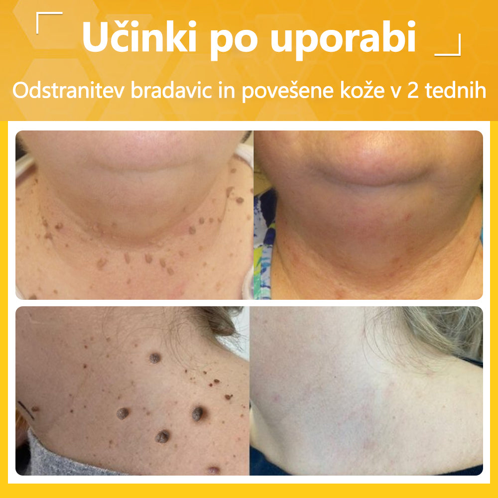 Poskusila sem vse za svoje bradavice, vendar nič ni delovalo tako kot Twinsun™ Močna krema s čebeljim strupom. V samo enem tednu je moja bradavica povsem izsušena in brez bolečin odpadla. Zdaj je moja koža mehka in brezhibna!